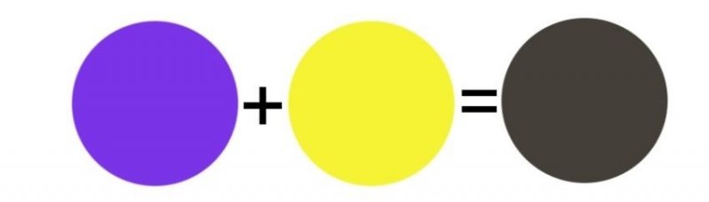 Еще один способ получить коричневый цвет — смешать желтый с фиолетовым. При отсутствии второго делается смесь из синего и красного. Фиолетовый больше тяготеет к синему, поэтому для создания «истинного» цвета нужно больше синей краски. Фиолетовый и красный на спектральном круге соседствуют, но находятся на противоположных концах видимого спектра. При равных пропорциях или перевесе в сторону красного цвета получится пурпурный. Он тоже пригоден для последующего смешивания с желтым. Последний, так или иначе, используется для добавления в более темный пигмент. Желтизну необходимо добавлять постепенно, чтобы не сделать слишком светлую смесь. Состав понадобится постоянно перемешивать, иначе можно упустить момент, когда желтый больше не нужен. Далее потребуется сделать тест оттенка на твердой поверхности. Решения затем принимаются, отталкиваясь от цвета поверхностного слоя.