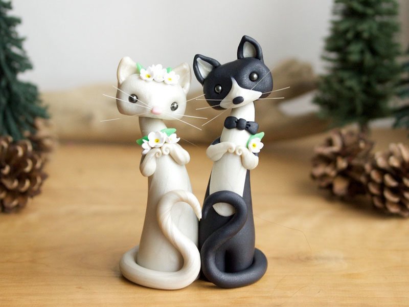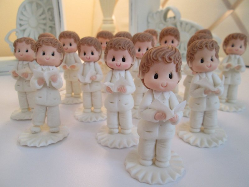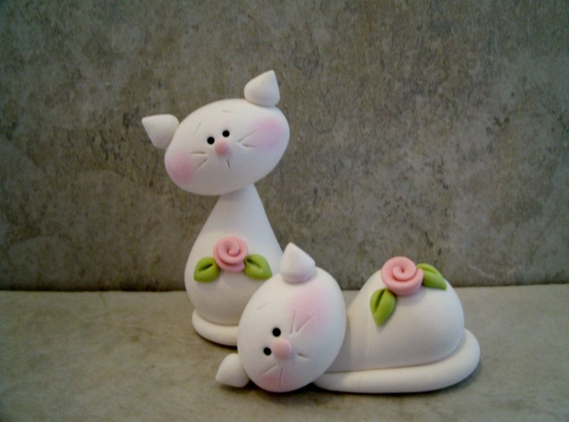 Из холодного фарфора получаются великолепные миниатюрные игрушки. Такие фигурки могут украшать домашние коллекции любителей керамики, полки с книгами и фотографиями, кулинарные шедевры хозяйки. К примеру, из материала можно изготовить жениха и невесту для свадебного торта или героев любимых мультфильмов ребенка для празднования дня рождения. Еще один вариант применения материала — лица, руки и ноги больших тряпичных кукол. Они помогут передать тонкие эмоции в чертах лица или мордочки, но при этом не придадут композиции дополнительный вес. Закрепляют «маски» из холодного фарфора клеем на набитой основе головы. Ладони и стопы насаживают на проволоку каркаса туловища.