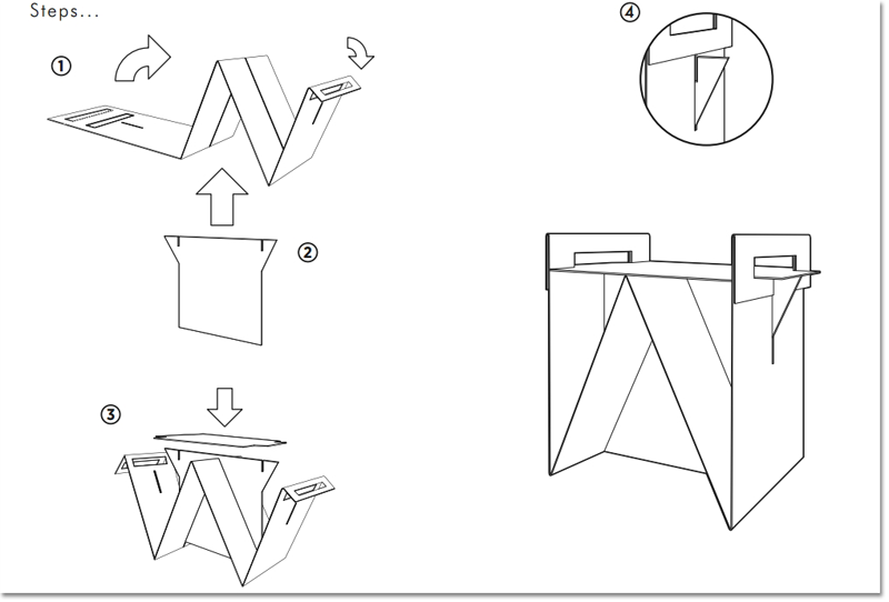 Независимо от сложности чертежа и размеров, особенностей будущей конструкции, мебель из картона изготавливают по единому алгоритму. Бумажные лекала прикладывают к основному сырью, обводят карандашом и вырезают. Полученные детали необходимо подготовить к сборке – места среза зачистить наждачной бумагой. Выглядывающую текстуру гофрокартона можно заклеить скотчем, декоративной бумагой.