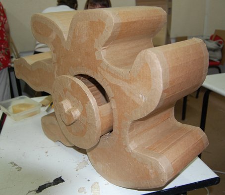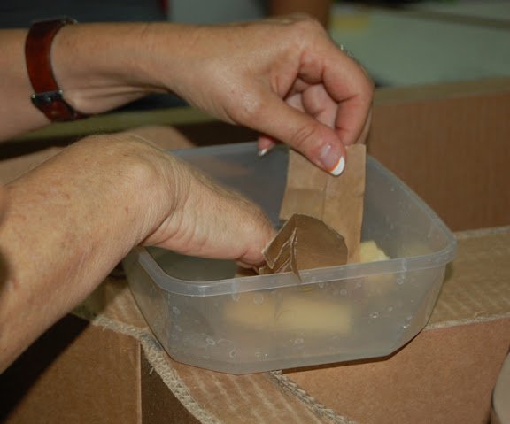 Все элементы, склеенные слоями, на период высыхания помещают под пресс. Необходимо организовать надавливание на все участки с одинаковой силой. Для этого можно использовать большие книги, другие увесистые предметы с плоской поверхностью. Неровности, образовавшиеся после склеивания, маскируются крафт-бумагой. После полного высыхания мебели можно приступать к ее укреплению и декорированию.