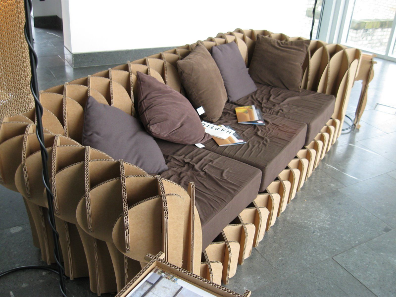Оригинальный дизайн. Можно создать уникальные вещи по необычным выкройкам. Красиво смотрятся диваны с мелкими сотами, кукольные домики в полный рост ребенка, столики на фигурных картонных ножках.