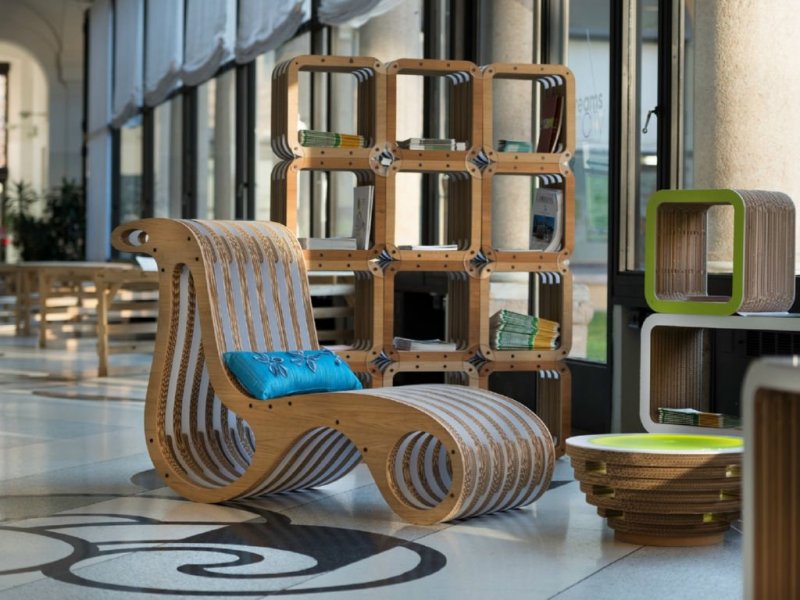Картонные предметы отлично впишутся в деревенский, скандинавский, эко интерьер. Мебели для отдыха всегда найдется место в просторной гостиной, на лоджии, закрытой террасе загородного дома. Подвесные гамаки из бумажных трубочек и мобильные стульчики можно брать с собой на пикник или рыбалку.