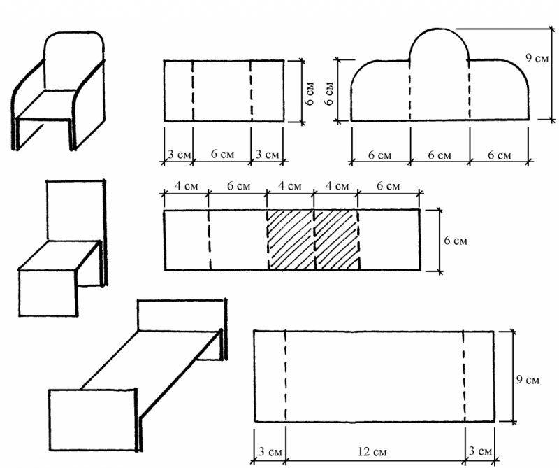 Плотная упаковка от бытовых приборов и прочих изделий может стать отличным материалом для создания не только оригинальных поделок, но и практичных аксессуаров для дома. Мебель из картона можно сконструировать своими руками с помощью простых схем и мастер-классов. Разнообразие вариантов чертежей позволит воплотить в жизнь самую необыкновенную идею. Картон имеет массу преимуществ, благодаря которым можно сделать множество функциональных вещей. Собственноручные творения будут пригодны для использования, прослужат долго, если правильно подобрать материал и способ его обработки. Содержание Картон – свойства и особенности материала Виды картона Преимущества и недостатки картонной мебели Где можно использовать картонную мебель Идеи и варианты, что можно сконструировать из картона Мастер-класс: создаем мебель своими руками Необходимые материалы и набор инструментов Схемы и чертежи изделия Формирование деталей и сборка изделий Укрепление конструкций Декорирование Мебель из картонных треугольников и втулок Правила ухода Заключение Картон – свойства и особенности материала Производят картон из макулатуры, различных древесных масс. Материал состоит из нескольких слоев – внутреннее пространство заполняют дешевой механической стружкой, отходами, снаружи покрывают прочной, более дорогой целлюлозой с нанесением белила или без него. Картон, как и бумага, состоит преимущественно из растительных волокон. Его минимальная толщина – 0,2 мм. Технология изготовления практически идентична бумажному производству. Сначала измельченное сырье отливают, потом размалывают, прессуют и сушат. На выходе можно получить два типа изделий – марки А и В. Характеризуют продукцию следующие параметры: Вес. Толщина. Показатели влажности. Электроизоляционные свойства. Способность впитывания влаги (воды, бензина, масла). Степень деформации при намокании и высушивании. Виды картона Картон различается по плотности и характеристиками. Каждый тип материала имеет свое назначение. В основном его используют для упаковки, чтоб сохранить целостность содержимого. Также из него делают емкости для фасовки, декоративные, подарочные коробки, отдельные листы. По составу и назначению картон делится на следующие виды: Упаковочный. Используют на производствах для фасовки продукции любой группы и габаритов. Гофрокартон делится на классы в зависимости от количества слоев и их плотности. Имеет высокие показатели прочности и амортизации. Полиграфический. Из него делают папки, буклеты, переплеты, различные макеты. Поверхность картона идеально гладкая, забеленная. Изделия обладают повышенной прочностью к механическим повреждениям, не продавливаются при нажатии без усилия, не расслаиваются. Хромэрзац. Такой картон для коробок делают из очищенной древесины и целлюлозы простой или отбеленной. В основном используется для упаковки товаров в рознице (бижутерия, парфюмерия, моющие средства, кондитерские изделия и прочее). Уступает по популярности гофрокартону из-за высокой стоимости. Обладает хорошей плотностью, несмотря на малое количество слоев (максимум 4). Декоративный дизайнерский. Производят из качественного дорогостоящего сырья. Материал может быть разной формы, размера, цвета. Наибольшую популярность получил в рекламном деле. Из него делают визитки, фла