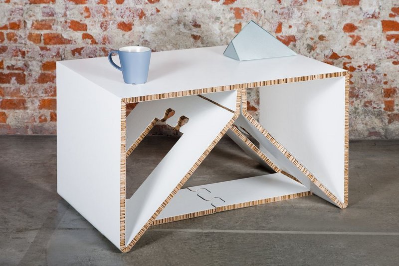 Сделать оригинальные предметы интерьера можно не только из цельных больших листов картона. В ход можно пустить маленькие коробочки, втулки от туалетной бумаги. Для изготовления функциональных кресел, столов необычной формы потребуется заготовить множество треугольников. Техника схожа с модульным моделированием, но в больших масштабах. Картон нарезают на полоски, ширина зависит от желаемой величины треугольника. Затем складывают несколько раз в технике оригами. Основа для работы не должна быть жесткой и многослойной.