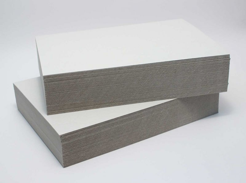 Производят картон из макулатуры, различных древесных масс. Материал состоит из нескольких слоев – внутреннее пространство заполняют дешевой механической стружкой, отходами, снаружи покрывают прочной, более дорогой целлюлозой с нанесением белила или без него.