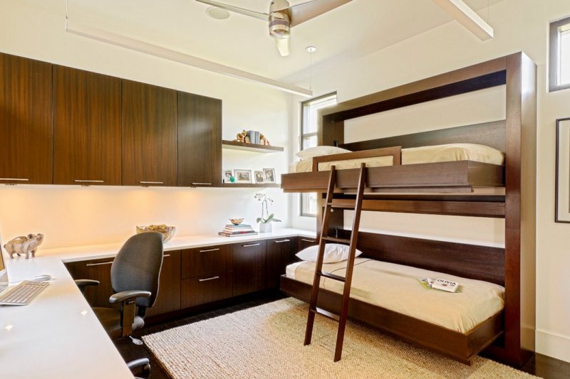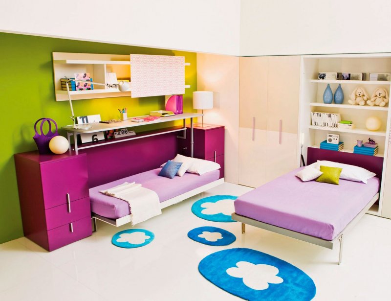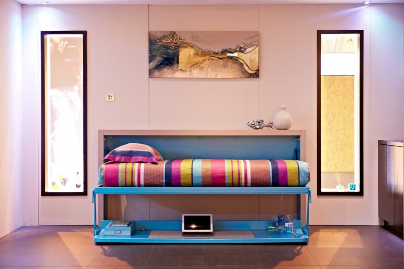 Многообразие конструкций, расцветок позволяет оборудовать откидную кровать в любом интерьере детской. Гармонично впишутся в комнату ребенка конструкции любого типа.