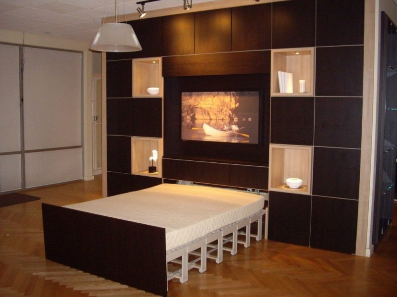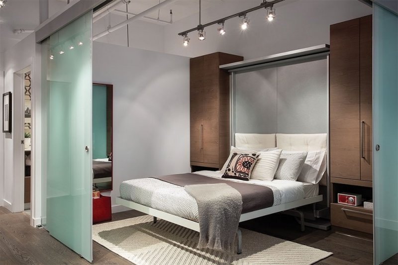 применяемые исключительно для экономии места, например, стандартная шкаф-кровать, спрятанная за фасадом;