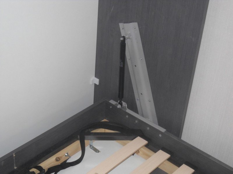 Отсутствие вспомогательных деталей усложняет процесс подъема и регулировки, но значительно повышает прочность механизма. Простые петли монтируются у изголовья кровати, при откидывании ее в шкаф матрас крепится на защелки.
