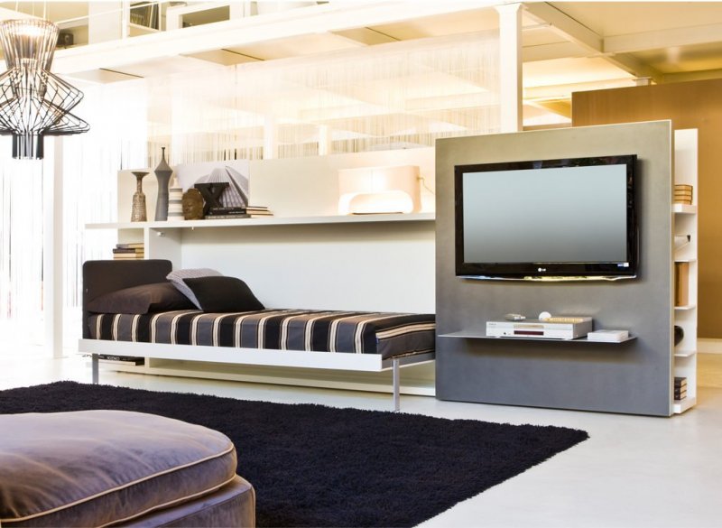 Рациональная организация пространства. Разнообразные многофункциональные конструкции, например, диван-кровать, кровать-стол, позволяют одну и ту же область применять для разных целей. В дневное время принимать гостей, ночью спать.