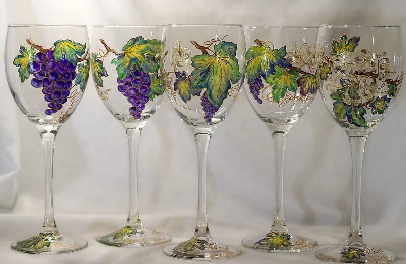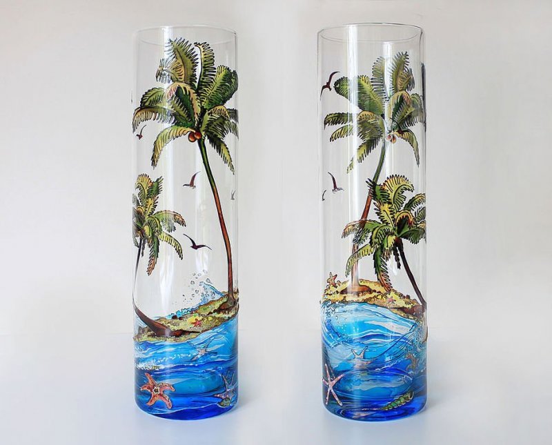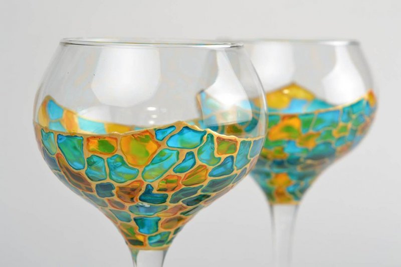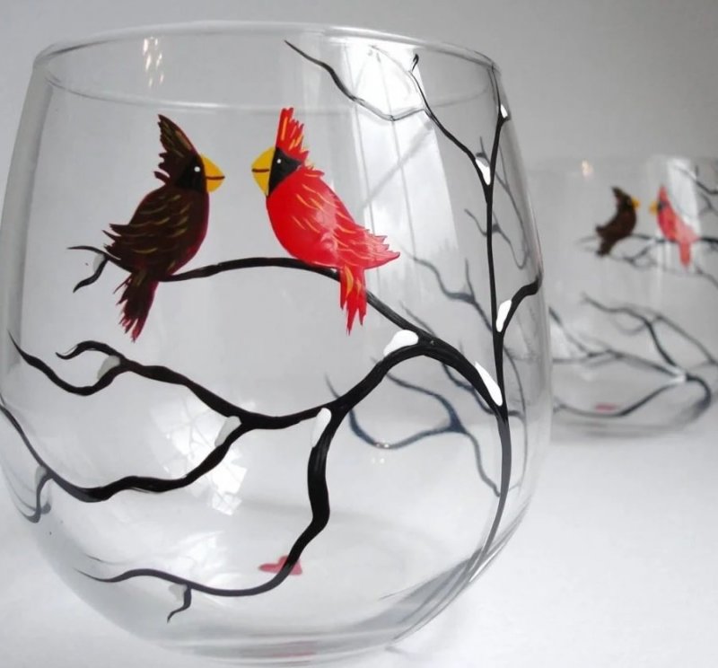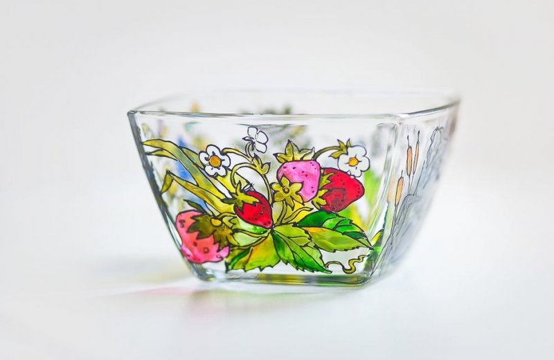 Расписать в любой технике можно самые разнообразные стеклянные предметы. Основной и вспомогательный материал выбирают в зависимости от личных предпочтений, уровня мастерства, наличия необходимых образцов и особенностей декора. Даже самый простой аксессуар можно превратить в настоящий шедевр и предмет гордости, который будет помещен в рамку, передаваться из поколения в поколение.
