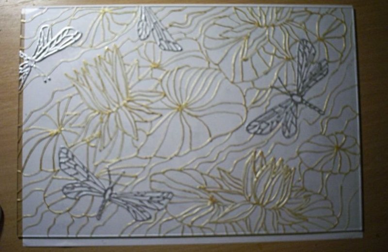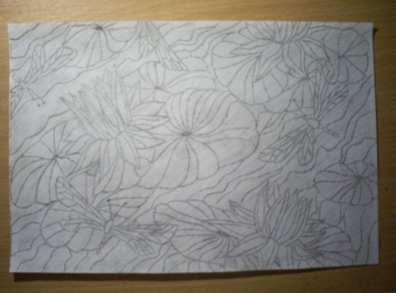 Пищевая пленка. На подготовленный рисунок сверху укладывается кусок пищевой пленки, при этом для надежной фиксации он должен быть больше по размеру, чем эскиз. С помощью маркера по стеклу обводим контуры по поверхности упаковочного материала. Далее пленка с переведенным изображением лицевой стороной фиксируется на стеклянном предмете, чтобы между ними не оставалось пустот или складок. С помощью бамбуковой палочки, гелиевой ручки аккуратно обводим контуры. В результате маркер переведется на стекло.