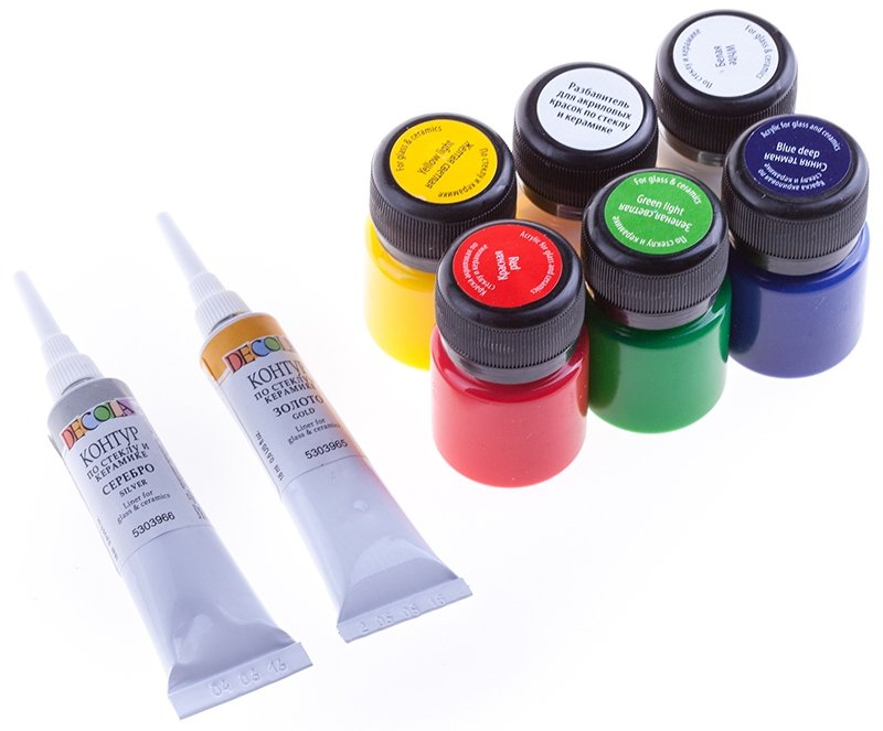 Советские рецепты. В 80х-90х годах для росписи стекла использовали краски из всевозможных подручных средств. Для основы смесей выбирали клей ПВА. Его смешивали с пищевыми красителями, гуашью, стержнями от ручек, ацетоном и различными растворителями.