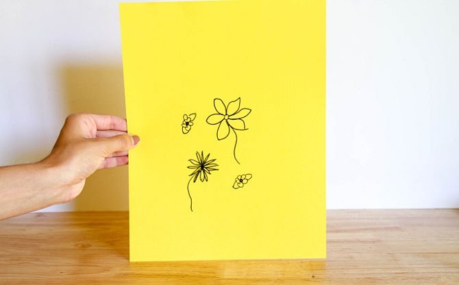 Прикладываем подготовленный трафарет, с помощью маркера переносим очертания изображения на плоскость предмета.