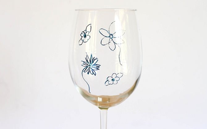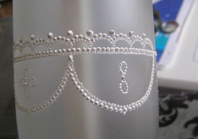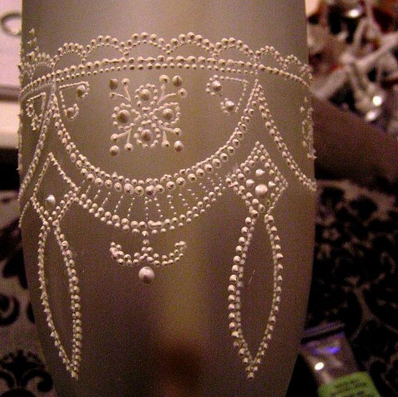 Данный способ еще называется point-to-point. Чтобы нарисовать изображение в нетрадиционной технике рисования, понадобится приобрести контурные краски. Начинать знакомство с этим видом лучше на простых, ненужных предметах. Рассмотрим простой мастер-класс по нанесению точечного рисунка в виде цветочка на поверхность бокала: