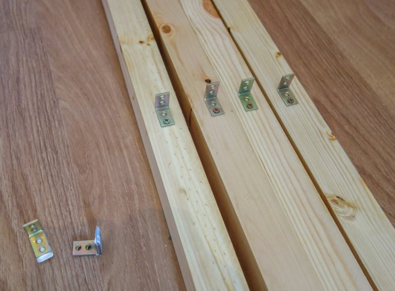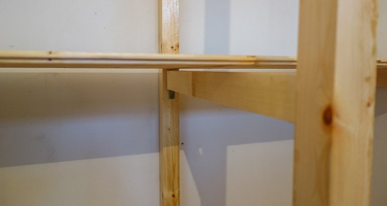 На боковые части монтируются держатели для будущих полок. Если планируется прикреплять их саморезами с внешней стороны, этот шаг опускается.