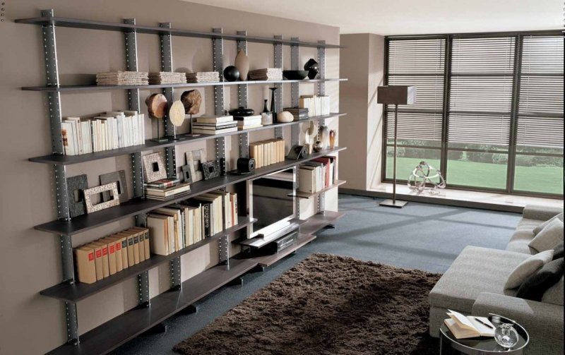 Стеллажи в гостиной