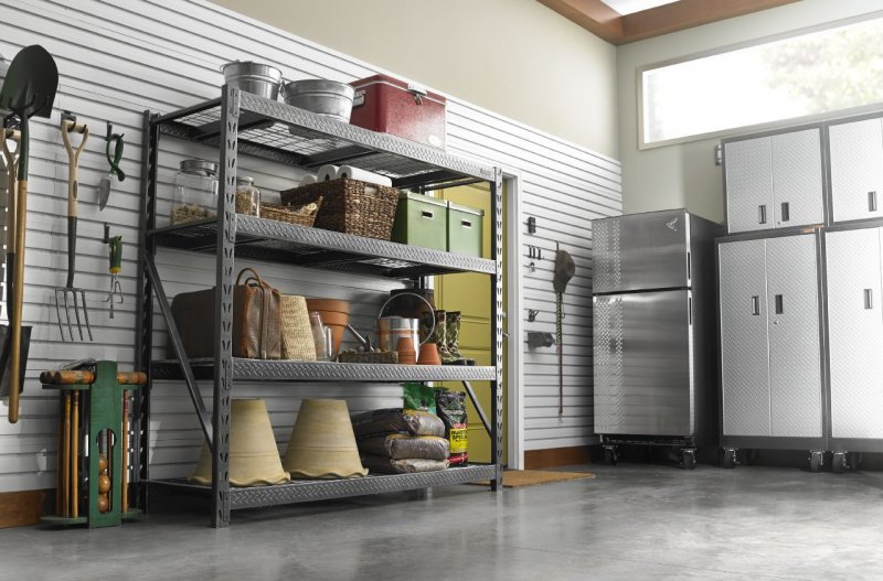 В хозяйственных помещениях оборудование стеллажей более чем оправдано. Главный аргумент – их большая вместительность, легкий доступ к размещенным на них предметам, высокие несущие характеристики.