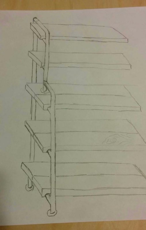 Первое, что нужно сделать – создать эскиз будущей конструкции. После этого разрабатывается чертеж с указанием всех размеров. Необходимо продумать габариты полок, их функциональность и расположение, необходимую нагрузку. Для воспроизведения сложных изогнутых форм необходимо разработать специальные лекала.