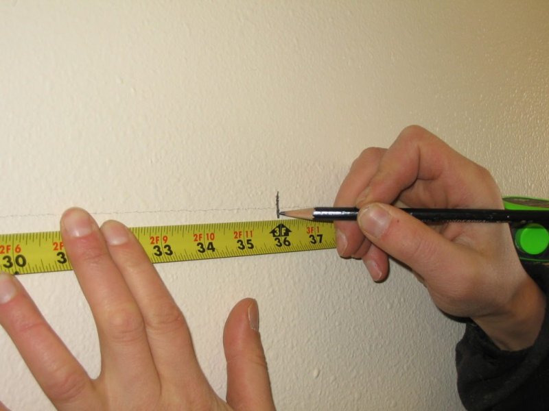 Разметка переносится со схемы на стены с помощью угольника, рулетки. Необходимо контролировать правильность нанесения отметок с помощью строительного уровня.