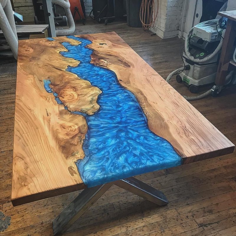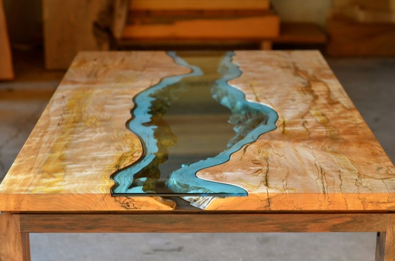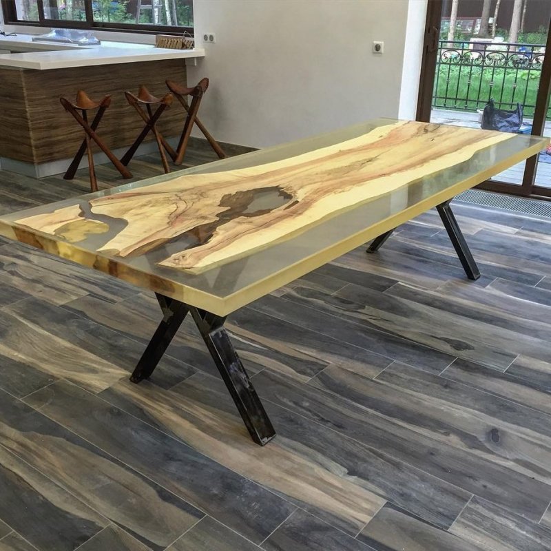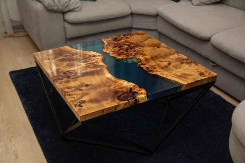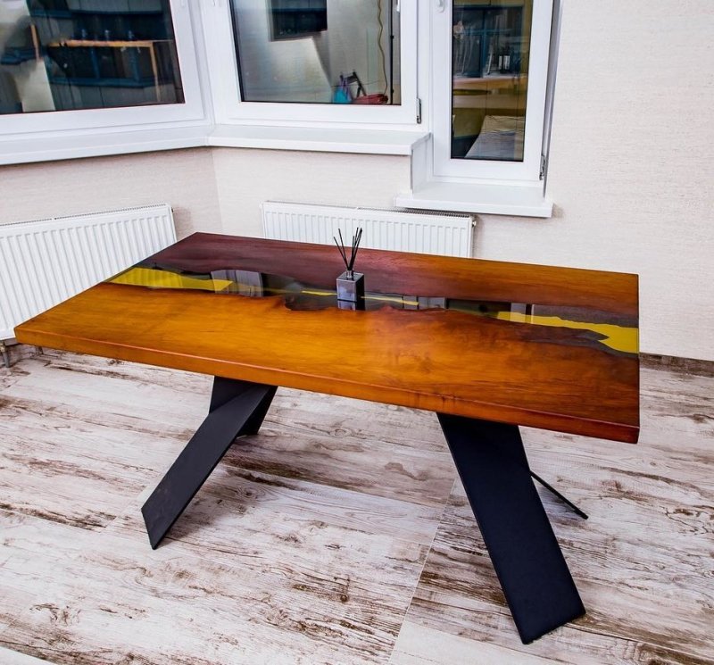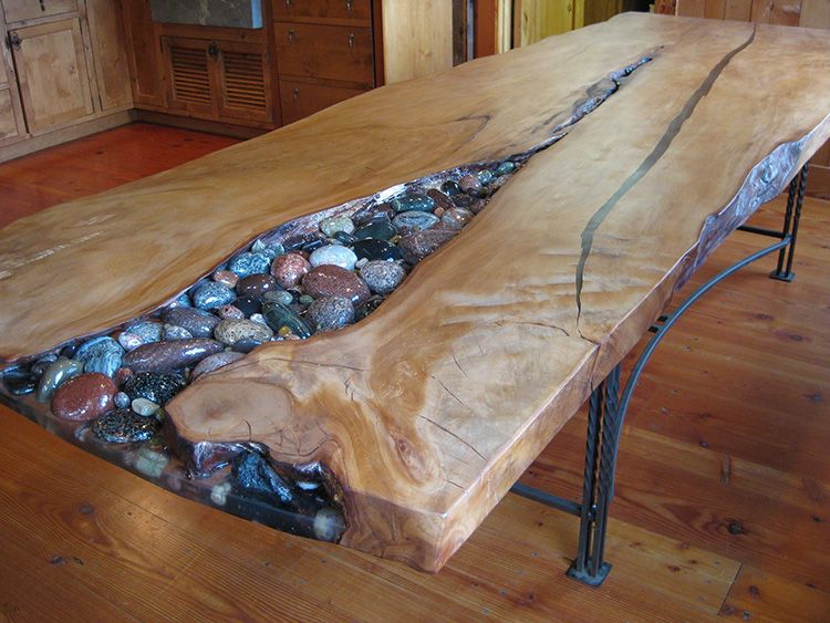 Применить эпоксидку при изготовлении стола можно либо в качестве реставрационного материала, либо как основную или составную часть при изготовлении нового изделия. Во втором варианте можно выделить три основных вида мебели: