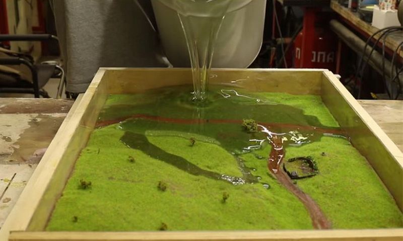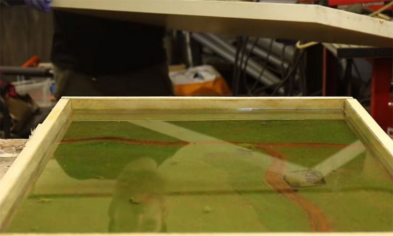 Между уложенными элементами заливается эпоксидная смола синего цвета, иногда она полностью прозрачная, имеет зеленый оттенок. Все зависит от замысла автора. Некоторые мастера добавляют в смесь фосфор, благодаря чему ночью изделие светится. Также в качестве декора используют искусственных рыбок, коряги, другие интересные элементы.