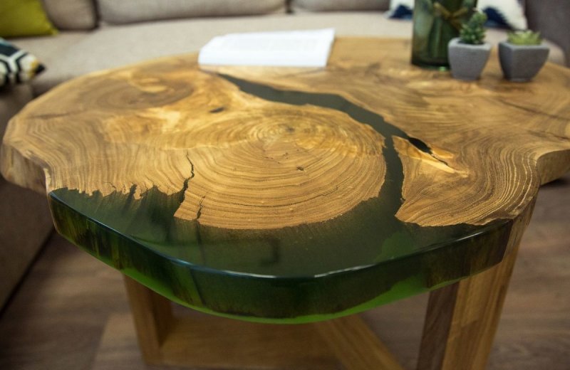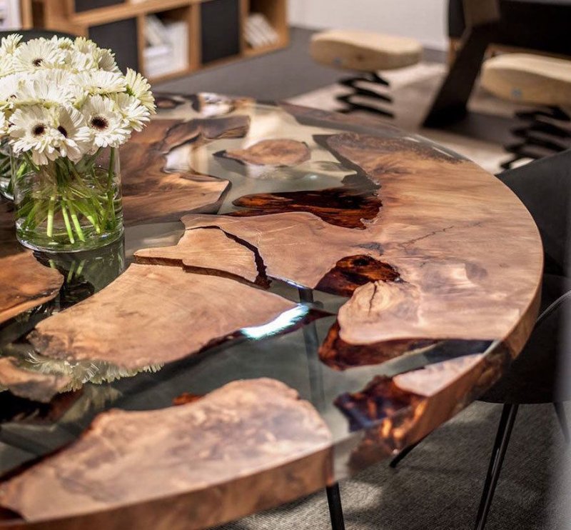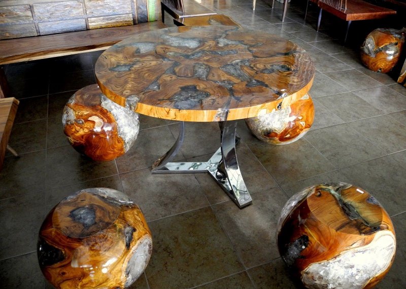 Мебель из дерева сама по себе имеет очень интересный и красивый вид, способна стать украшением любого интерьера. Но полет дизайнерской мысли безграничен. Наличие у эпоксидки уникальных свойств воодушевляет мастеров, использующих в своей работе все достижения науки, на создание непревзойденных изделий.