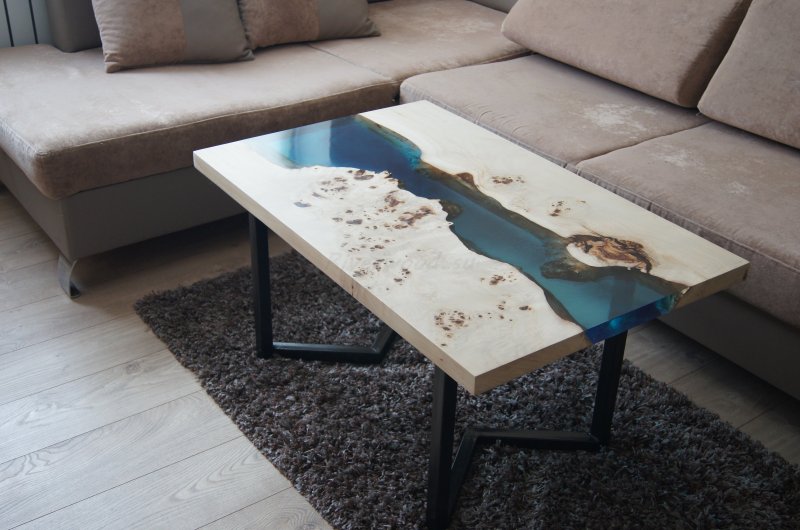Стол из эпоксидной смолы поражает своим оригинальным, изысканным видом. Готовое изделие получают путем нанесения синтетического вещества на деревянное основание. Востребованность материала в производстве мебели объясняется не только его эстетическими, но и практическими характеристиками. Среди основных достоинств обеденного, журнального столика можно выделить: