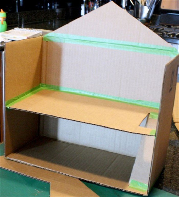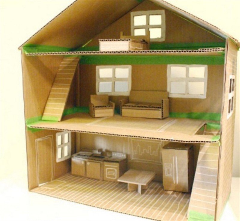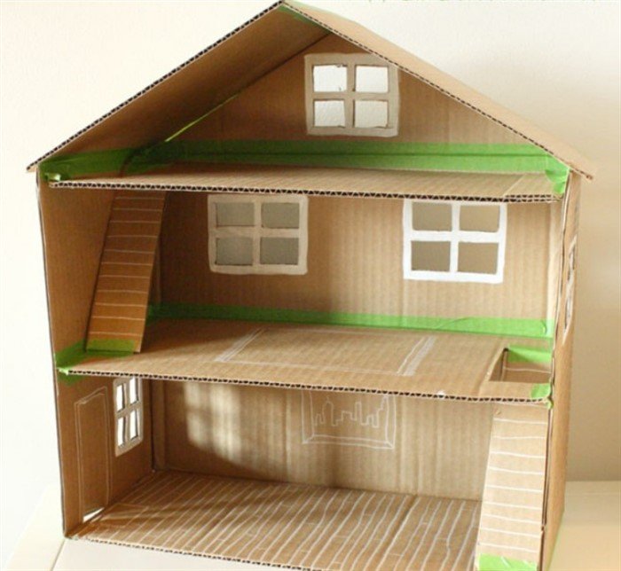Картонный домик – ненадежная конструкция. Маленькая девочка быстро его разломает. Материал легко гнется. Создается изделие из: