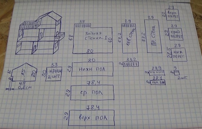 Пошаговый мастер-класс стандартного домика в три этажа:
