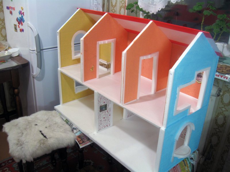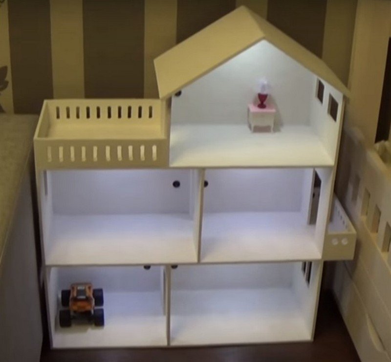 Взрослые забывают детские мечты. Особенно девушки, которые в детстве представляли свое идеализированное будущее. Кто-то мечтал о красоте, пении, красивых вещах, другие представляли свою взрослую жизнь в достатке, окружении счастливых детей, с внимательным мужем в большом светлом доме. Но все они мечтали о своем игрушечном домике, который позволит воплотить задуманное. Поколения приходят на смену друг другу, но желания девочек остаются неизменными. История появления игрушки насчитывает десятки веков. Известны экземпляры, найденные в Египте, которые относятся к существованию государства до н. э. В Европе такие изделия были доступны лишь богатым семьям, но со временем все изменилось. Сейчас в детском магазине есть все что угодно, от классической Барби до персонажей любимых мультфильмов, которые могут проживать даже в замках. Однако, неприлично высокая стоимость таких конструкций может удивить родителя. Но, не стоит огорчаться, порадовать своего ребенка можно игрушкой, сделанной собственноручно. Содержание Преимущества изготовления домика своими руками Составление проекта Форма, этажность и размер дома Материалы для строительства кукольного домика Фанера Дерево ДСП Ламинат Гипсокартон Пенопласт Картон Домики из старой мебели Домик из картонной коробки Домик-сумка из ткани Варианты наружного оформления Преимущества изготовления домика своими руками Любая поделка, особенно созданная для своих детей, наполнена теплом, обладает сильной энергетикой, приносит радость малышу. В процессе работы проявляется индивидуальность, творческие способности. Можно собрать всех членов семьи, с удовольствием провести время в окружении своих близких. Итак, рассмотрим преимущества саморучной конструкции: Эксклюзивность, оригинальность. Домик будет отличаться тем, что это единично произведенный предмет искусства. Такого больше не будет ни у кого. Компании, производящие фабричные изделия, делают их специально с деталями, которые их портят, или конструкцию неприемлемую в целом, но с очень привлекательными компонентами. Это делается намерено. Идеальные игрушки, имеющие совершенный вид, отличаются невероятно высокой стоимостью; Всегда в моде. Своеручный продукт никогда не утратит своей актуальности. Он не зависит от рекламы. Хорошая вещь будет долго нравиться владельцам; Полет фантазии. При создании домика можно воплотить любые пожелания ребенка. Он может быть настольным, достигать человеческого роста. Иметь этажность, разное количество комнат, окон, предметов интерьера; Экономия домашнего бюджета. Кроме приятного времяпровождения, собственноручный домик позволит сохранить средства. Ребенок должен участвовать в изготовлении домика. Он всегда подскажет, что бы хотел видеть, чего ожидает от создаваемой конструкции. Кроме того, он будет больше ценить собственноручную игрушку. Составление проекта Домик – заветная мечта многих девочек. Он предоставляет возможность хорошо отдохнуть, поиграть с друзьями, воплотить детские желания. Работа по созданию изделия начинается с вопроса о том, как сделать кукольный домик своими руками, какие материалы использовать, определится с размерами. Для этого создают проект будущей конструкции. Он заключается в переносе замысла на бумагу. Должен соответствовать определенным требованиям: Функциональ