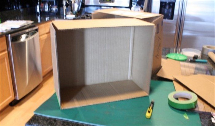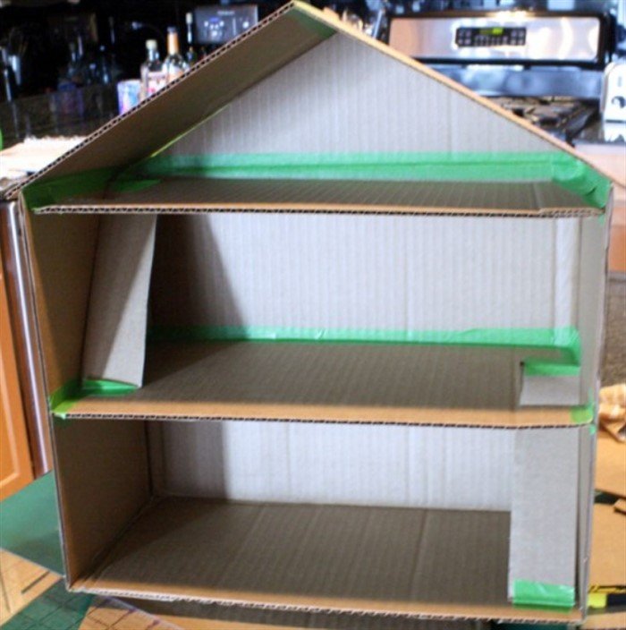 Наиболее простой способ создать домик. Необходимо подобрать коробки соответствующих размеров. Материалов для работы также необходимо по минимуму:
