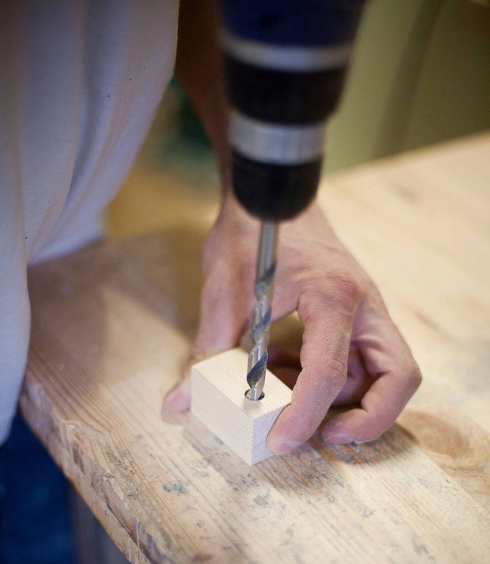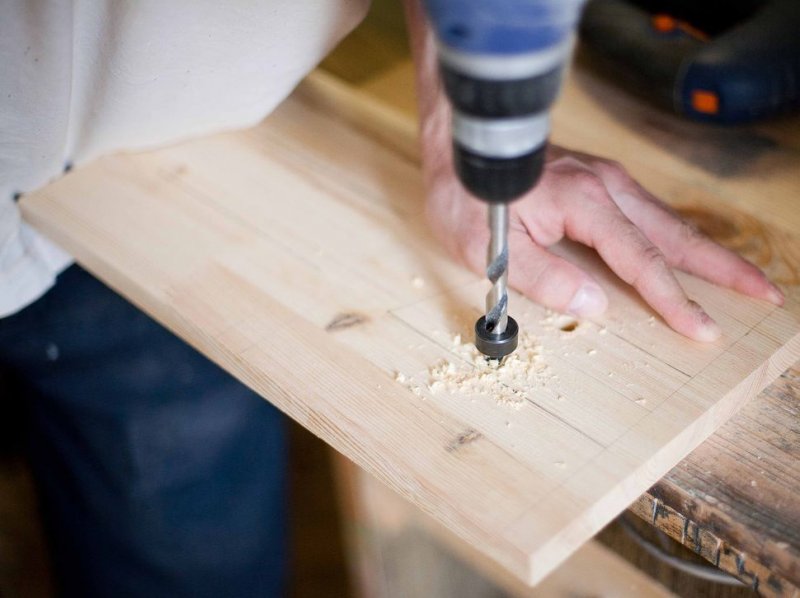 Перед креплением задней перегородки, предварительно в ней сверлим окна в форме круга, для этого используем дрель со специальной насадкой.