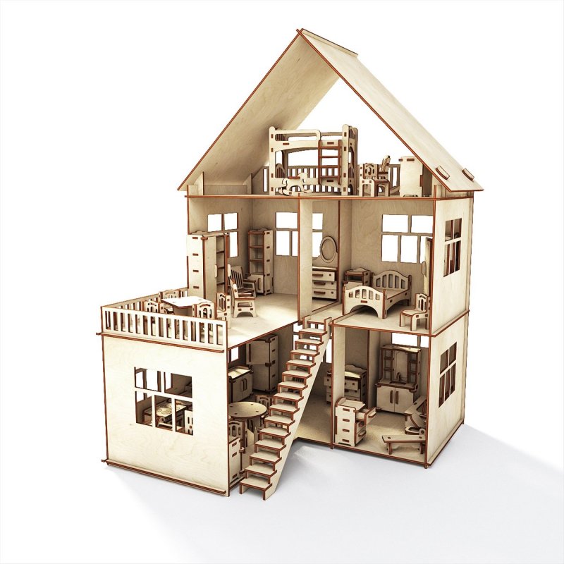 Полет фантазии. При создании домика можно воплотить любые пожелания ребенка. Он может быть настольным, достигать человеческого роста. Иметь этажность, разное количество комнат, окон, предметов интерьера;
