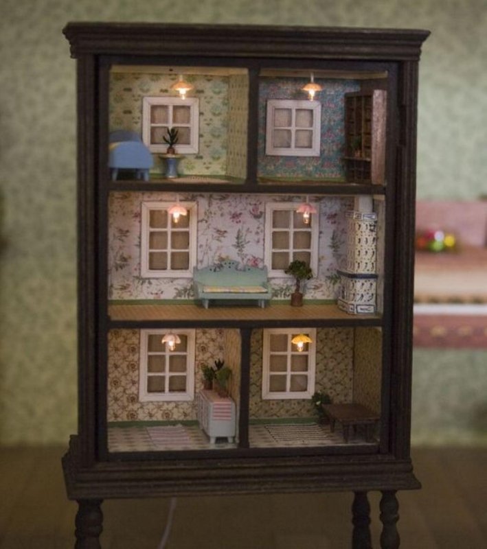На завершающем этапе расставляем предметы интерьера, помещаем внутрь кукол.