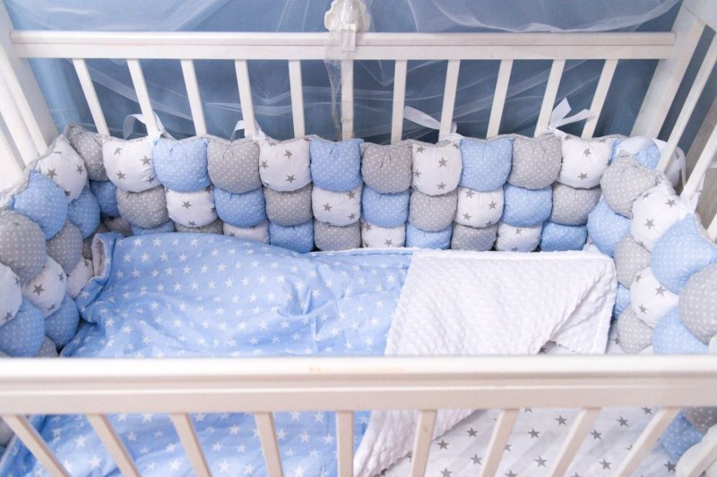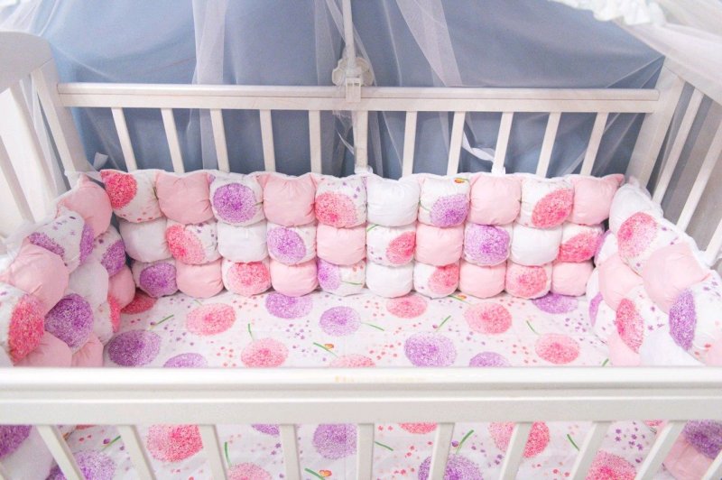 Сначала нужно определиться с ролью защитной перегородки. Ключевое значение имеет предпочтительная высота. То же самое касается и конфигурации: сплошная по всему периметру или на 3 стороны, чтобы с одной ребенка было видно всегда (например, со стороны кровати, где спит мама). Важно также количество элементов, чтобы обустроить все удобства для малыша. Для создания изделия понадобятся ткань и наполнитель, а также все инструменты, используемые при шитье. Тканевый материал тщательно готовят: гладят, а при потребности перед этим стирают. Далее делаются выкройки. Затем они переносятся на материал. Но при наличии достаточного опыта нужные размеры сразу наносятся на ткань. После этого шьются бортики, завязки и декоративные элементы. Процесс во многом будет напоминать изготовление подушек. В конце все собирается вместе — изделие готово.
