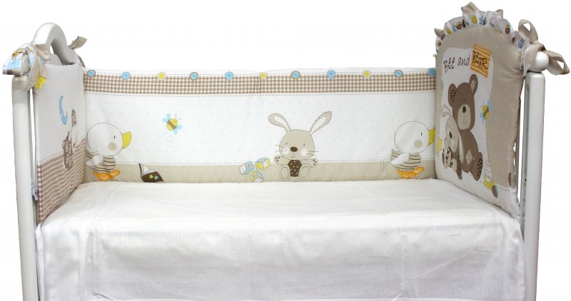 Бортики размещают со всех сторон кровати. Их главная задача — способствовать безопасности малыша и защищать его организм от болезней. Бамперы предохраняют ребенка от падений из кровати, ударов о ее элементы и сквозняков. Если кровать негде ставить, кроме как рядом с окном, — бортики используются обязательно. Любознательные дети также любят совать ручки и ножки между палок. Это еще одна причина для применения специальных приспособлений. Дополнительное значение этой защиты — способствование засыпанию и комфортному сну, так как ничто не будет отвлекать малыша. Бортики выполняют развивающую функцию. Разноцветные рисунки в виде людей, животных и различных объектов станут предметом изучения для малыша. Ребенок вскоре начнет узнавать эти предметы и детали в окружающем мире. Он научится сосредотачиваться. Важно, чтобы картинка его не раздражала. Съемные детали на защитных подушках будут развивать моторику рук.
