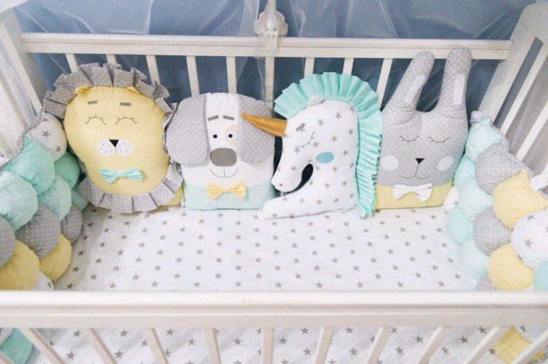Бортик в кроватку — полезный и красивый предмет. Он не только защищает малыша, но и позволяет ему чувствовать себя комфортно, развиваться и удовлетворять потребность в изучении мира. Детские бамперы закрывают от холода, что необходимо не только годовалым детям. Бортики — это и защита, и игрушка, и декоративная подушка. Смастерить такое изделие можно самому. Первым делом готовятся все необходимые материалы. После этого определяется нужное количество деталей, размеры и формы. После создания образцов нужные параметры переносятся на ткань. Затем начинается постепенный процесс шитья: разные элементы поочередно соединяются, постепенно приобретая готовый вид. Сделать необходимо бортики, крепежные элементы и декоративные чехлы. Готовое изделие декорируется различными мягкими дополнениями. Стоит попытаться сделать подушки-бортики в виде животных.