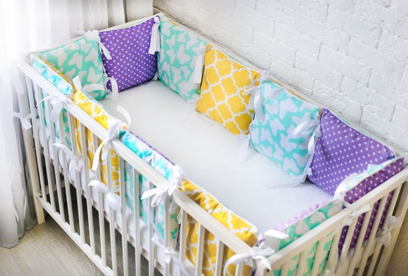 Бортики — плоские мягкие изделия, которые размещают по периметру кроватки для защиты малыша от ударов. Их еще называют детскими бамперами. Предназначается такая защита для новорожденных, годовалых и детей возрастом до 3 лет. Бортики-подушки можно использовать и в дальнейшем, например, в качестве игрушек. Родителям предоставляется широкий выбор защитных барьеров для детей. Встречаются 3- и 4-сторонние варианты, низкие и высокие модели. Если бортики имеют небольшую высоту, то ребенок будет постоянно на виду, что позволит маме оставаться спокойной за его состояние. Высокие варианты пригодятся для детей постарше, так как они непоседливы и более самостоятельны. Желающие сэкономить или проверить себя в шитье могут сделать детский бампер самостоятельно. В продаже имеются качественные материалы. Еще можно найти множество интересных вариантов выполнения.