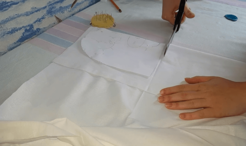Нужна чистая выглаженная ткань. Выкройки делаются заранее, а потом они аккуратно переносятся на материю. На швы оставляется 1—1,5 см. Для бамперов с чехлами раскроить потребуется два комплекта материи — подкладочный и для чехлов. Если наполнителем выбран рулонный синтепон, то раскрой осуществляется таким же способом. Размеры образцов, однако, уменьшаются на 1,5—2 см (зависит от толщины материала), чтобы наполнитель поместился в чехол. Если бортики делаются в виде подушек, раскройка не понадобится. Необходимо лишь вырезать квадраты определенного размера. Для обычной прямоугольной детской кроватки нужно двенадцать подушек размером 30x30 см. Подушечки в виде домиков можно делать по этой же схеме. Размер подбирается в зависимости от различных параметров кроватки. Размеры ложа тщательно измеряются, чтобы в случае чего можно было вносить нужные корректировки.