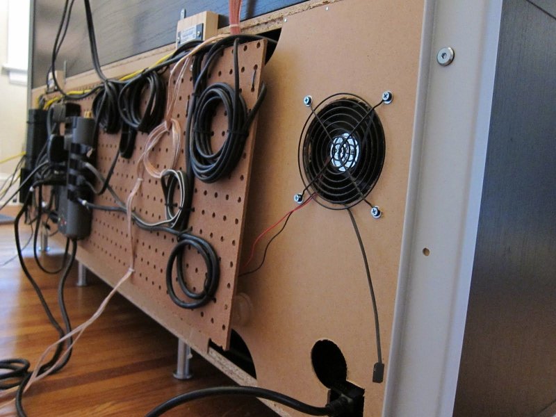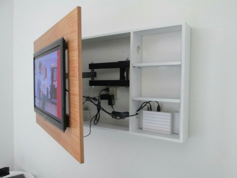 Когда приходится повесить кронштейн для тяжелого телевизора, конструкцию первого выбирают такую, чтобы уместить там все розетки. Иногда на стену, где будет размещен ТВ-экран, монтируют короб, в котором спрячутся шнуры от колонок, ДВД-проигрывателя, прочей электроники.