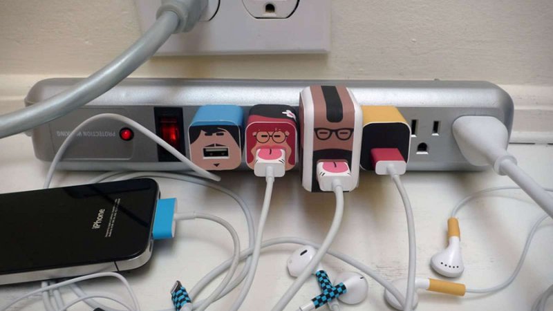 Современному человеку часто приходится заряжать несколько устройств одновременно. Когда все они вставлены в один «тройник» либо применяется «многохвостая» зарядка, с тремя-пятью шнурами для разных устройств, все элементы собираются под одну канцелярскую клипсу, крепятся к любой близлежащей поверхности. Некоторые покупные варианты представляют собой коробки-разделители с четырьмя-шестью фигурными отверстиями, через которые выводятся только «хвостики» зарядок. Подобное изделие легко выполнить своими руками, путем модернизации простой обувной коробки, оклеенной тканью, обернутой цветной бумагой.