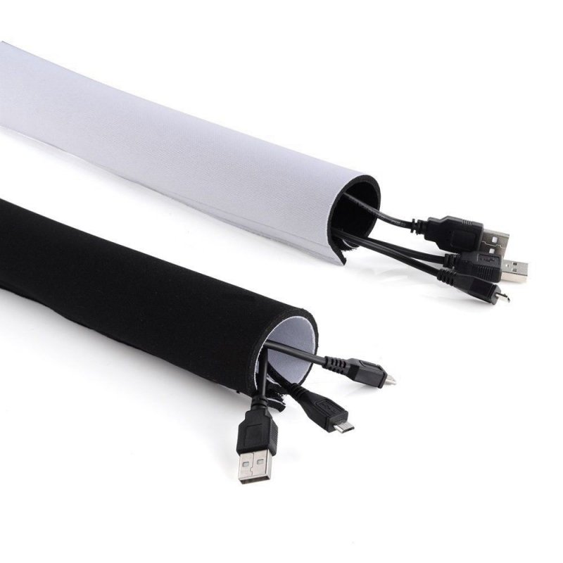 Собственноручно изготовить чехол для одного, нескольких шнуров одновременно, можно из разрезанных на узкие длинные полоски полиэтиленовых пакетов. Из них спицами или крючком вяжется своеобразный «рукав», в который просовываются все нужные проводки. Чтобы спрятать так удлинитель с зарядками, вяжется или шьется сумочка, подходящая по размеру.