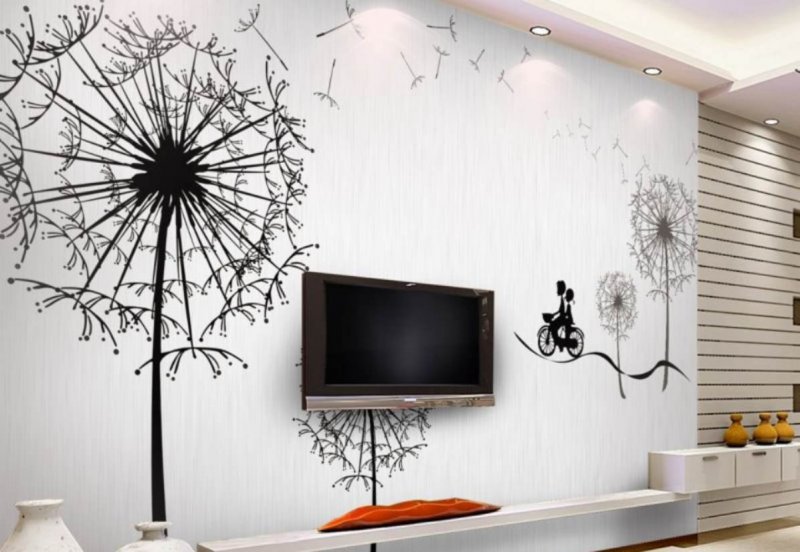 Кабели, шнуры от ТВ, приставки, колонок аккуратно скрываются за полкой, на которой размещен телевизор. Если же экран решено повесить на стенку – провод прячут в короб, подобранный под цвет обоев, а под ним ставят вьющееся растение, усики и веточки которого пускают виться по коробу.