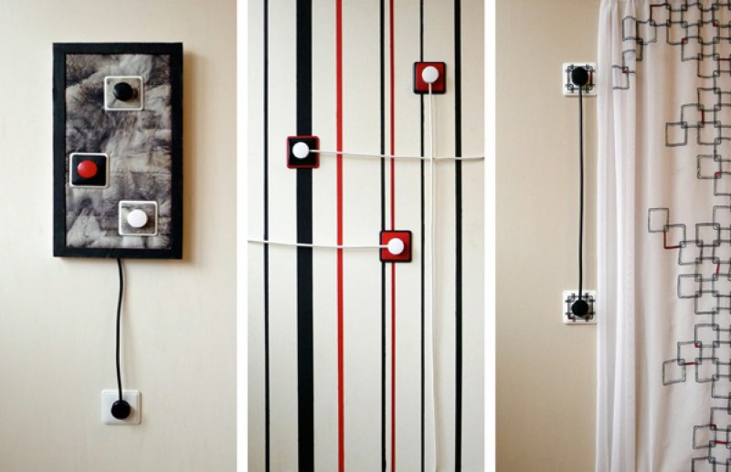 Цветные электрошнуры способны стать продолжением настенной росписи, дублируя рисунок на шторах, полу, имитируя «недостающие» части различных конструкций.