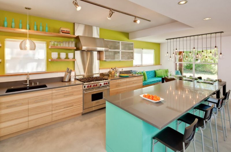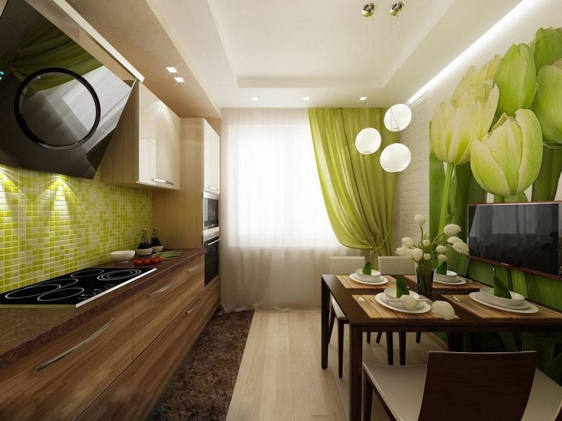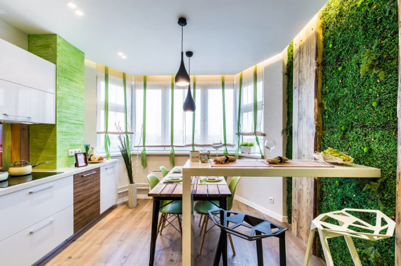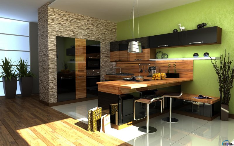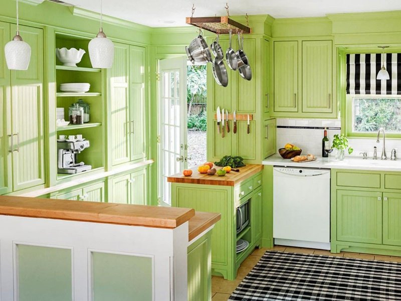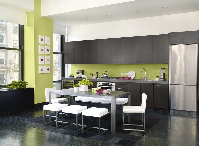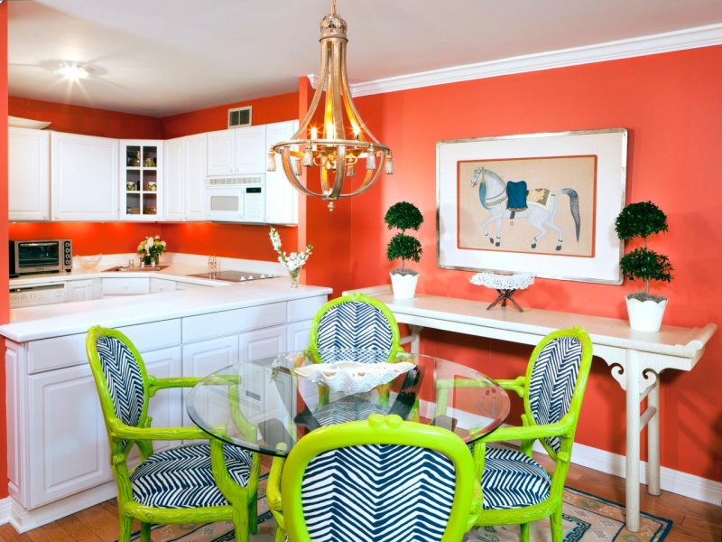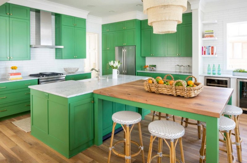 зеленый – это «цвет жизни», весьма полезный для глаз. Он успокаивает, освежает, снижает аппетит. Яркие оттенки придают интерьеру благородства, роскошности;