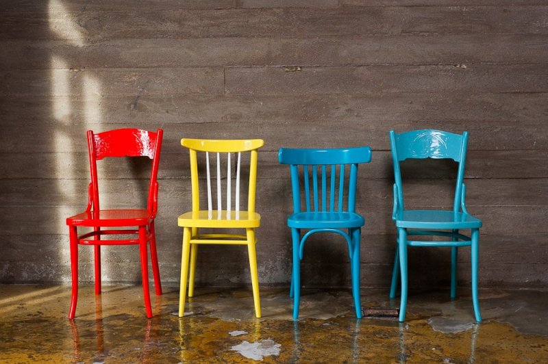 Покраска. Самый быстрый и наименее трудоемкий способ реставрации стульев. В зависимости от типа краски, поверхности можно придать глянцевый или матовый блеск.