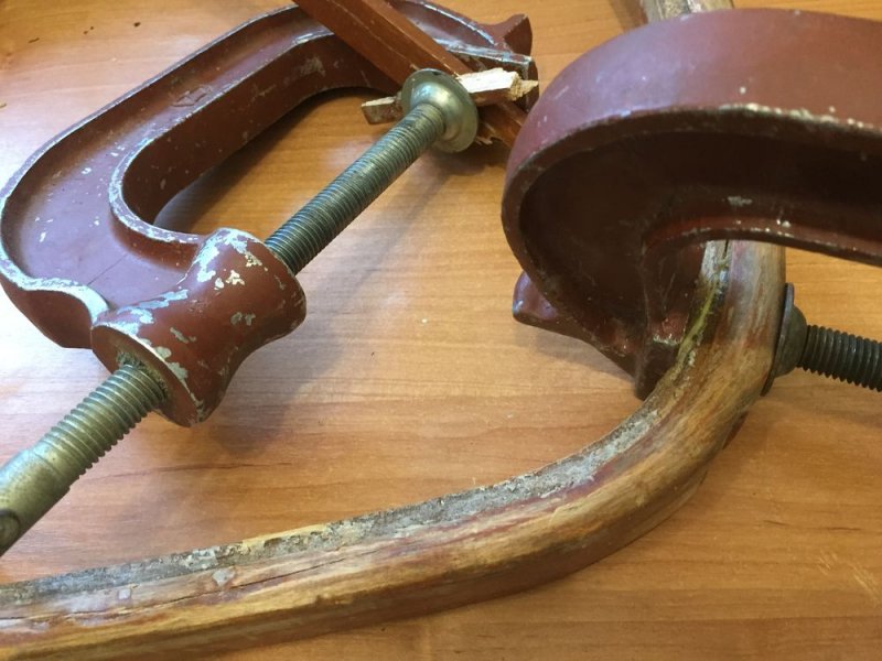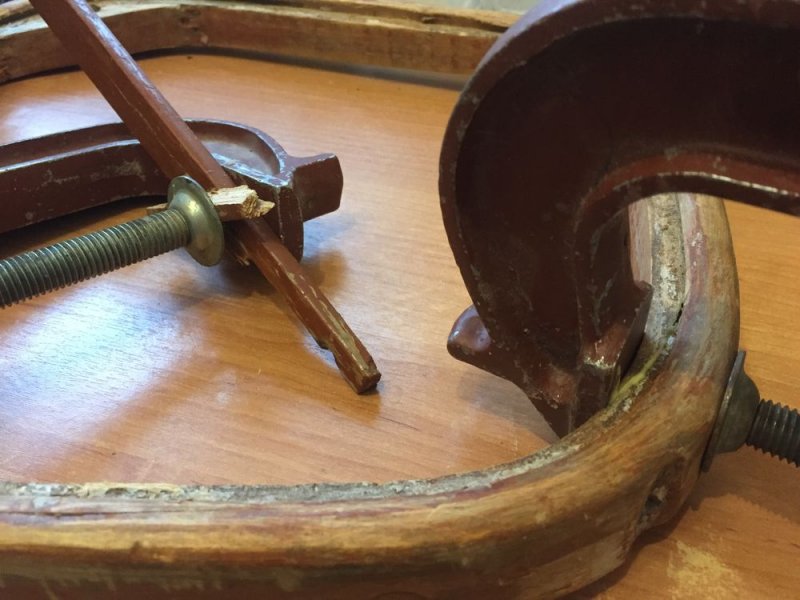 Если в изделии есть подлокотники, то обычно они вместе с парой ножек представляют собой одну цельную деталь. Когда детали стула соединены с помощью клееных шипов, их придется «размачивать» горячей водой или паром. Собирают мебель по такому же плану, но в обратном порядке.