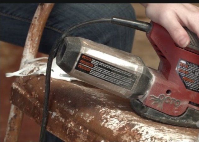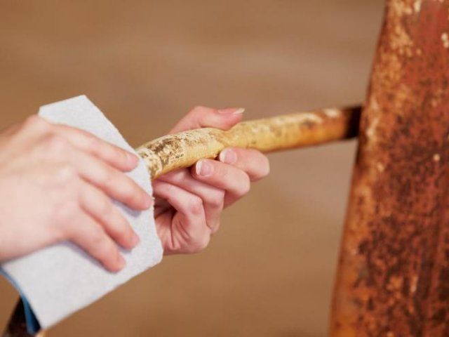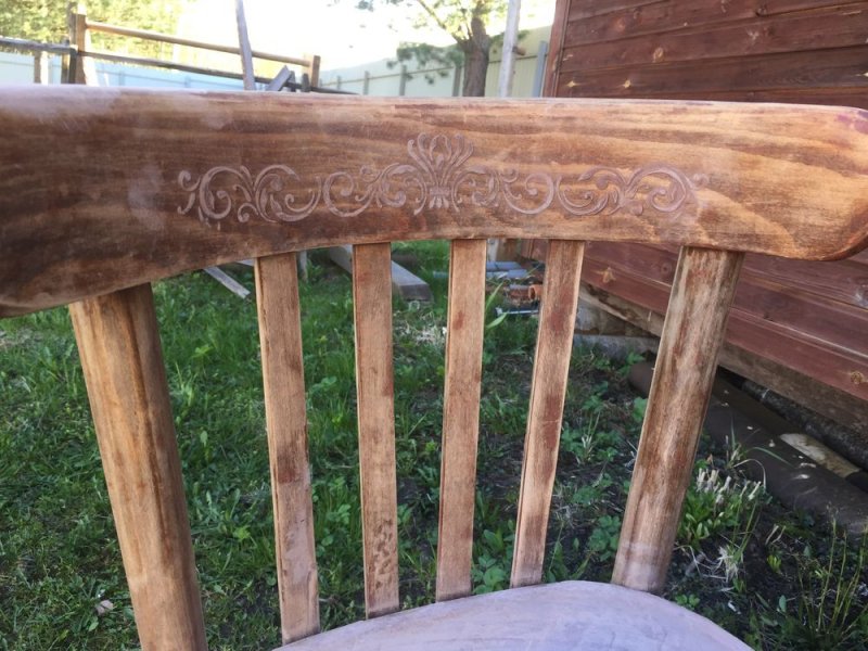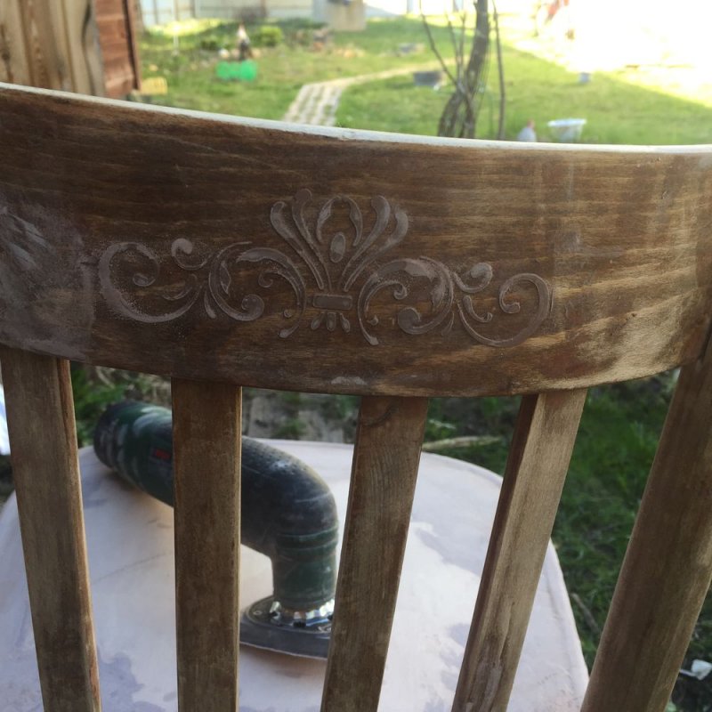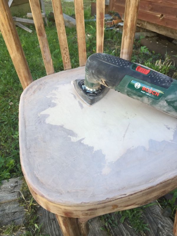 После удаления старого слоя покрытия изделие тщательно шлифуется. Можно использовать специальную машинку, а если таковой дома нет, то подойдет наждачная бумага средней зернистости. Поверхность стула нужно тщательно выровнять. На ощупь она должна быть слегка шершавой, как замша или нубук.