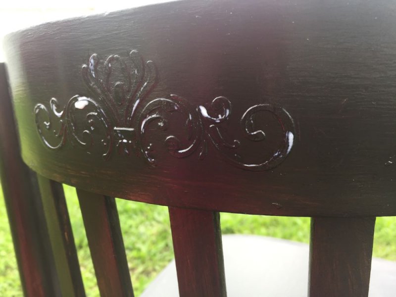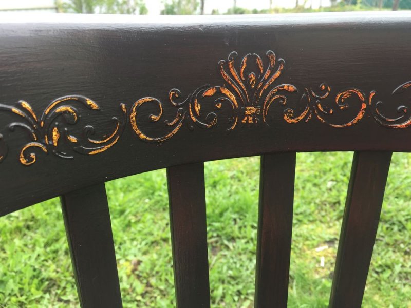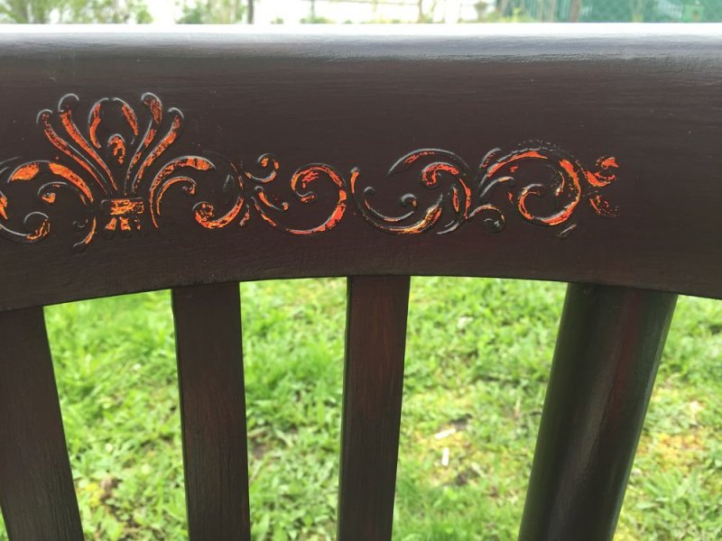Покраска с эффектом «потертостей». Проводится в два этапа. Сначала поверхность стула частично покрывают слоем темной краски. Ей дают высохнуть. После этого дополнительно покрывают воском. Теперь все изделие окрашивают в светлый тон. После высыхания состава «затемненные» места хорошенько ошкуривают, обнажая нижние слои воска и краски.
