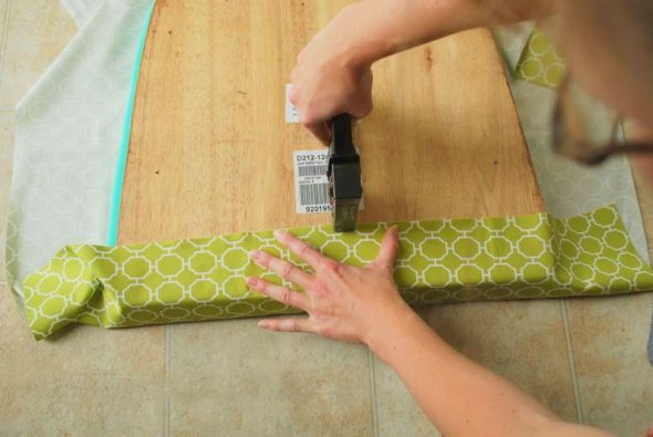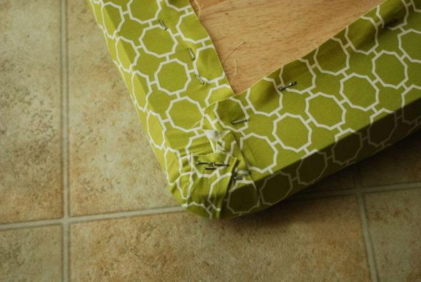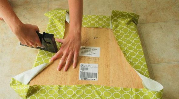 Раньше для этой работы использовали специальные мебельные гвозди (миниатюрные с кнопочными шляпками), но сейчас более актуальны степлеры со скобами. Спинку изготавливают по такому же алгоритму: основание из фанеры, затем набивка и завершают процедуру фиксацией обивочного материала. Если сидение оснащено пружинами, то перед поролоном укладывают слой ватина. Стильно смотрятся стулья, обшивка которых выполнена из того же материала, что и шторы или коврик в комнате.